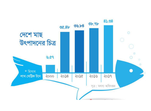 দেশে বিপুল পরিমাণ পাঙাশ, তেলাপিয়া ও রুইজাতীয় মাছের উৎপাদন বেড়েছে। থাইল্যান্ড, ভিয়েতনাম, চীনের উদ্ভাবিত মাছের জাত এখন বাংলাদেশের মৎস্য উৎপাদন বাড়িয়ে দিয়েছে। এখন শিক্ষিত তরুণেরা চাকরির দিকে না ঝুঁকে মাছ চাষ করে স্বাবলম্বী হচ্ছেন। এ ছাড়া ব্যাংকগুলো মাছ ও কৃষিকাজে সহজ শর্তে ঋণ দিয়েছে। এতে মাছের দিকে মানুষ ঝুঁকেছে। বাজারে মাছের ব্যাপক চাহিদাও মাছের উৎপাদন বৃদ্ধির অন্যতম কারণ ।